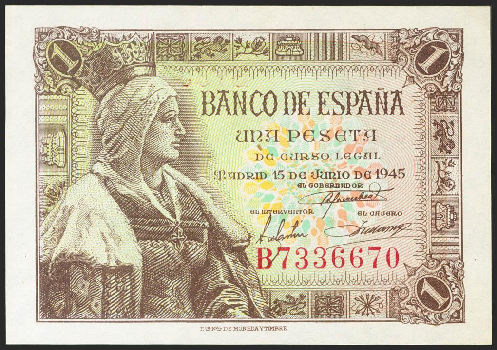 1 Peseta. 15 de Junio de 1945. Serie B. (Edifil 2021: 448a). Apresto original. SC-.