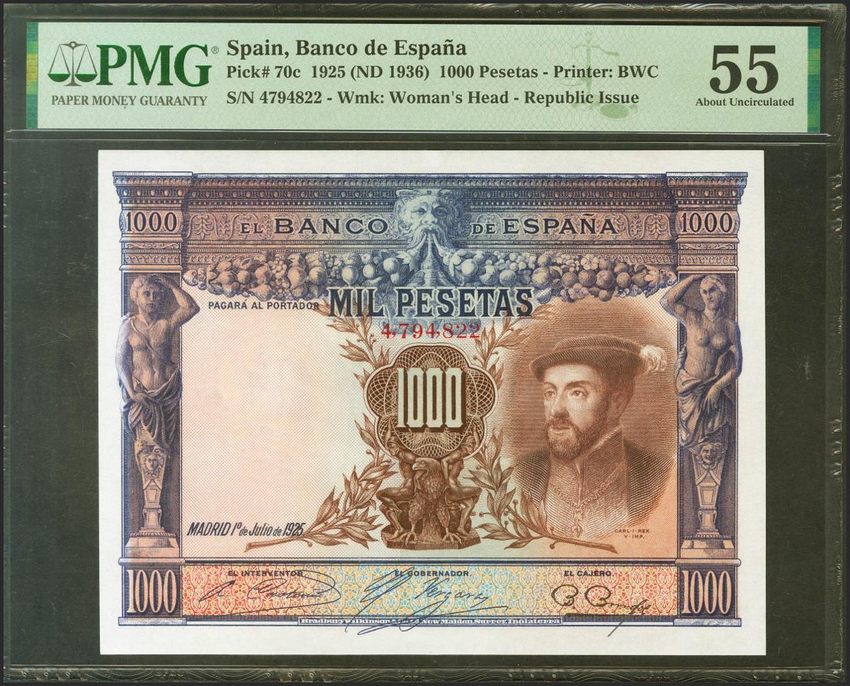 1000 Pesetas. 1 de Julio de 1925. Sin serie. (Edifil 2021: 351, Pick: 70c). EBC+. Encapuslado PMG55.