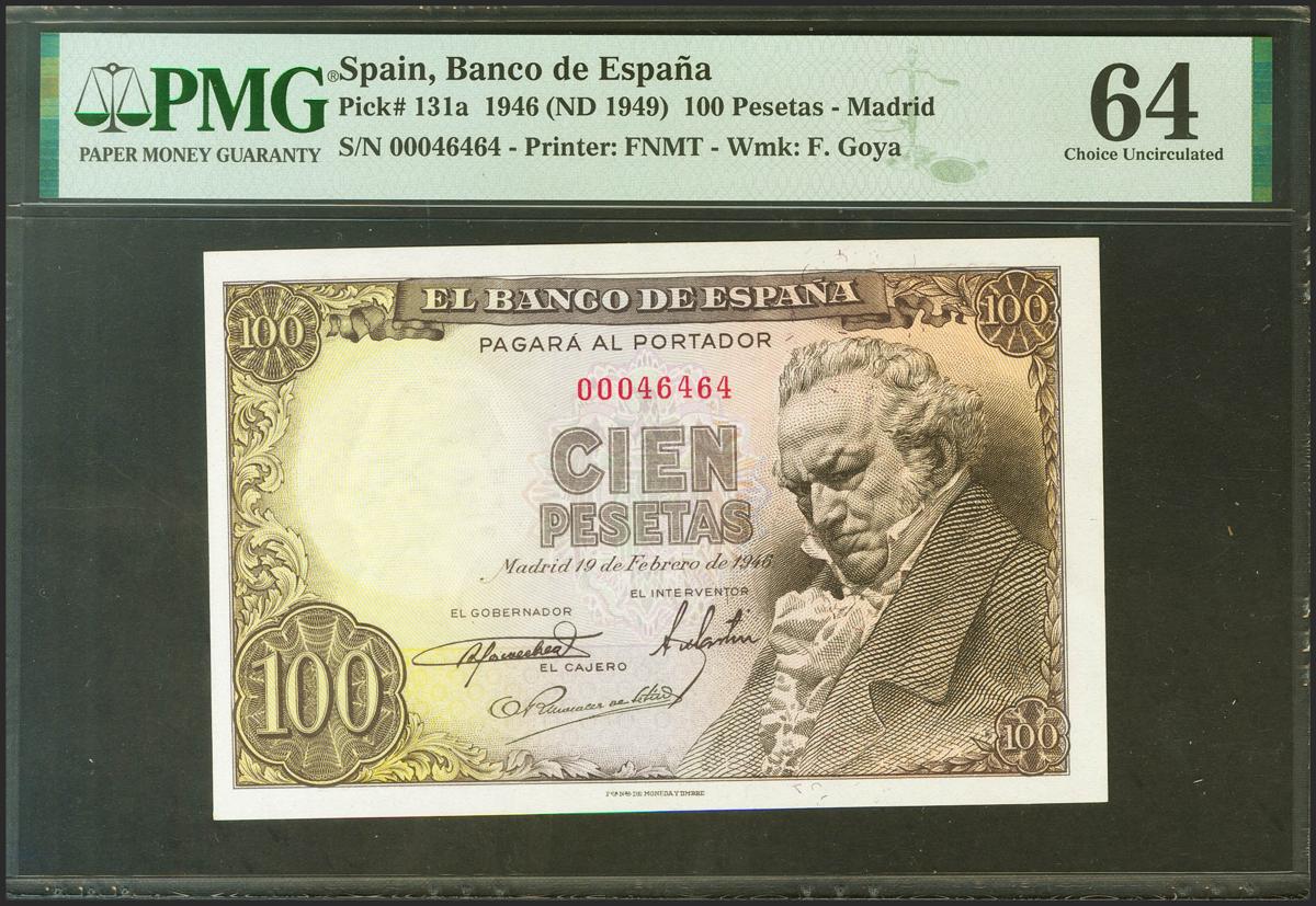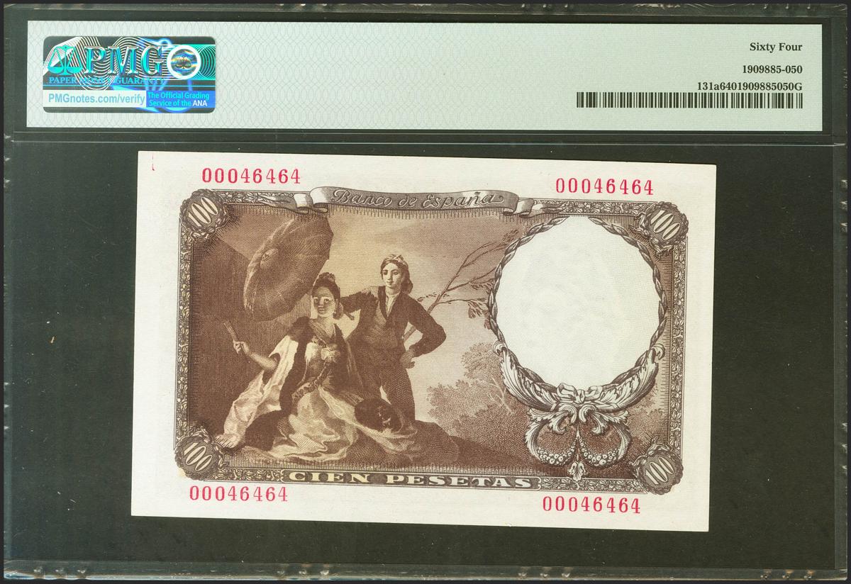 100 Pesetas. 19 de Febrero de 1946. Sin serie. (Edifil 2021: 451). SC. Encapsulado PMG64.