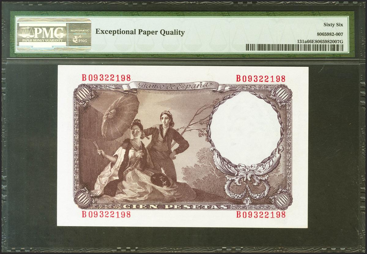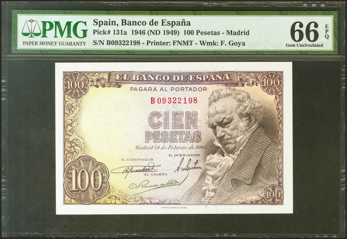 100 Pesetas. 19 de Febrero de 1946. Serie B. (Edifil 2021: 451b, Pick: 131a). SC. Encapsulado PMG66EPQ.