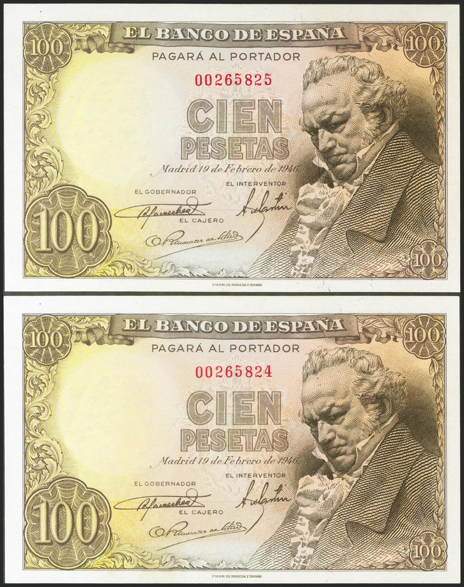 100 Pesetas. 19 de Febrero de 1946. Sin serie. (Edifil 2021: 451). Conserva gran parte del apresto original. EBC+.
