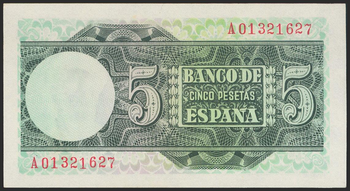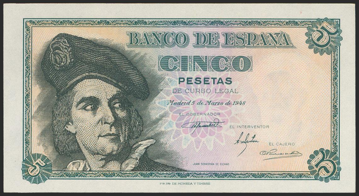 5 Pesetas. 5 de Marzo de 1948. Serie A. (Edifil 2021: 455a). Apresto original. SC.