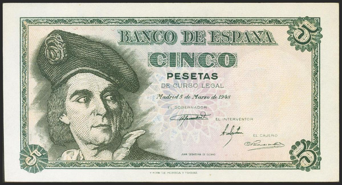 5 Pesetas. 5 de Marzo de 1948. Serie C. (Edifil 2021: 455a). SC-.