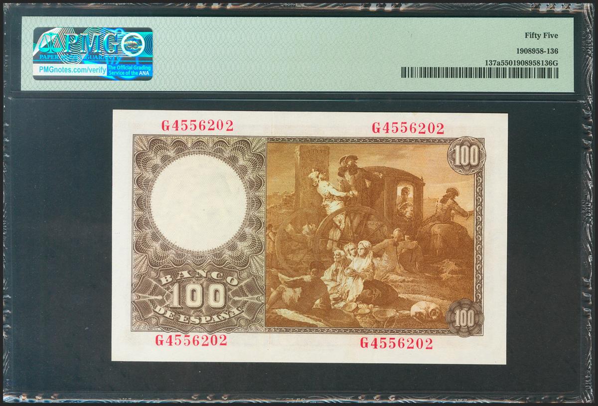 100 Pesetas. 2 de Mayo de 1948. Serie G. (Edifil 2021: 456a, Pick: 137a). EBC+. Encapsulado PMG55.