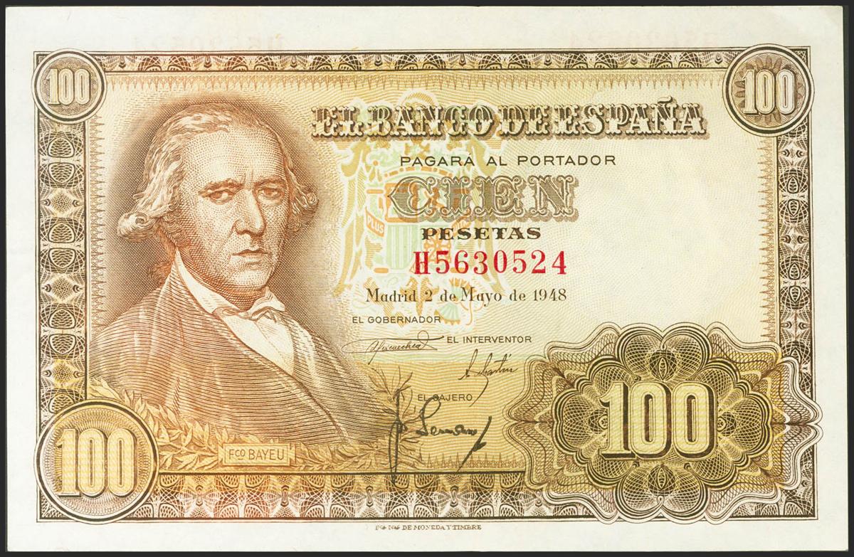 100 Pesetas. 2 de Mayo de 1948. Serie H. (Edifil 2021: 456a). Conserva gran parte de su apresto original. EBC+.