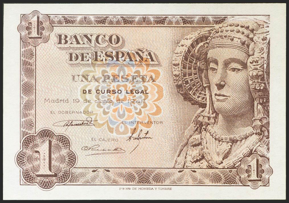 1 Peseta. 19 de Junio de 1948. Sin serie. (Edifil 2021: 457). Apresto original. SC.
