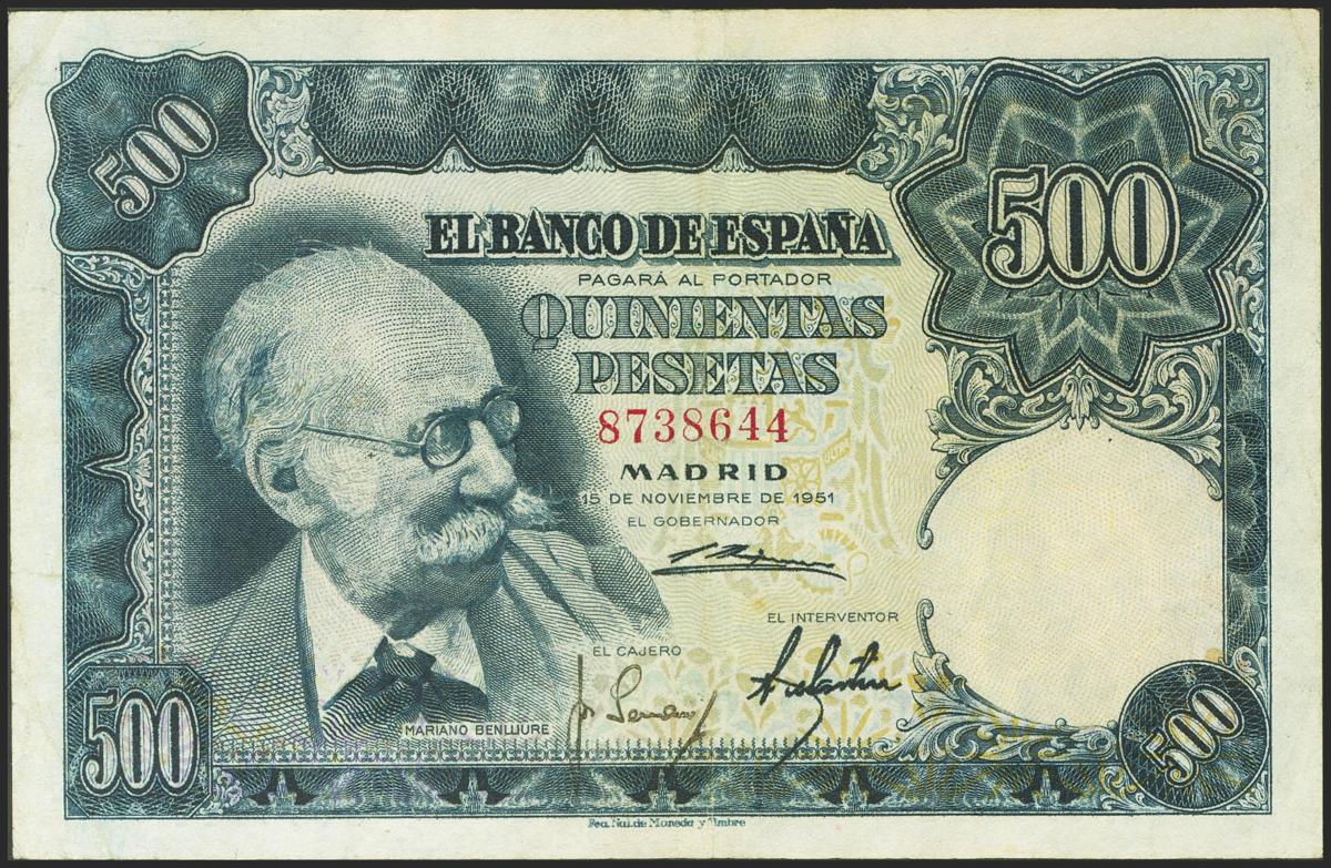 500 Pesetas. 15 de Noviembre de 1951. Sin serie. (Edifil 2021: 460). MBC.