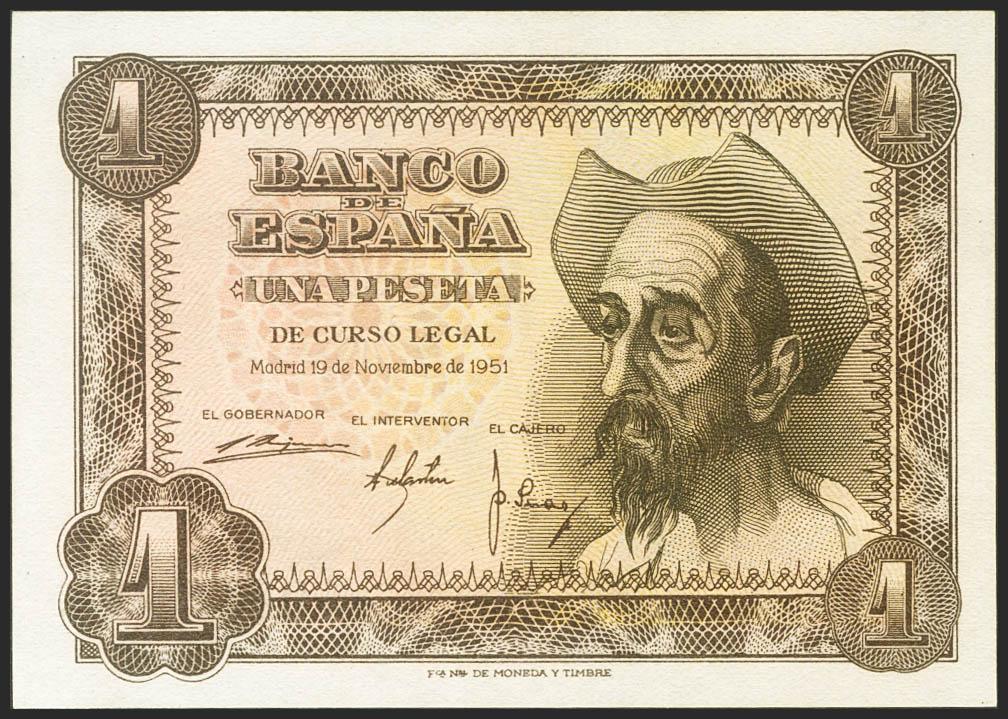 1 Peseta. 19 de Noviembre de 1951. Sin serie. (Edifil 2021: 461). Apresto original. EBC++.