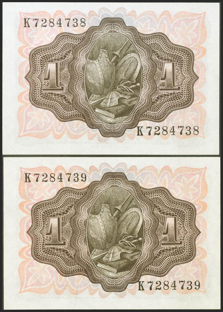 1 Peseta. 19 de Noviembre de 1951. Pareja correlativa. Serie K. (Edifil 2021: 461a). Apresto original. SC-.