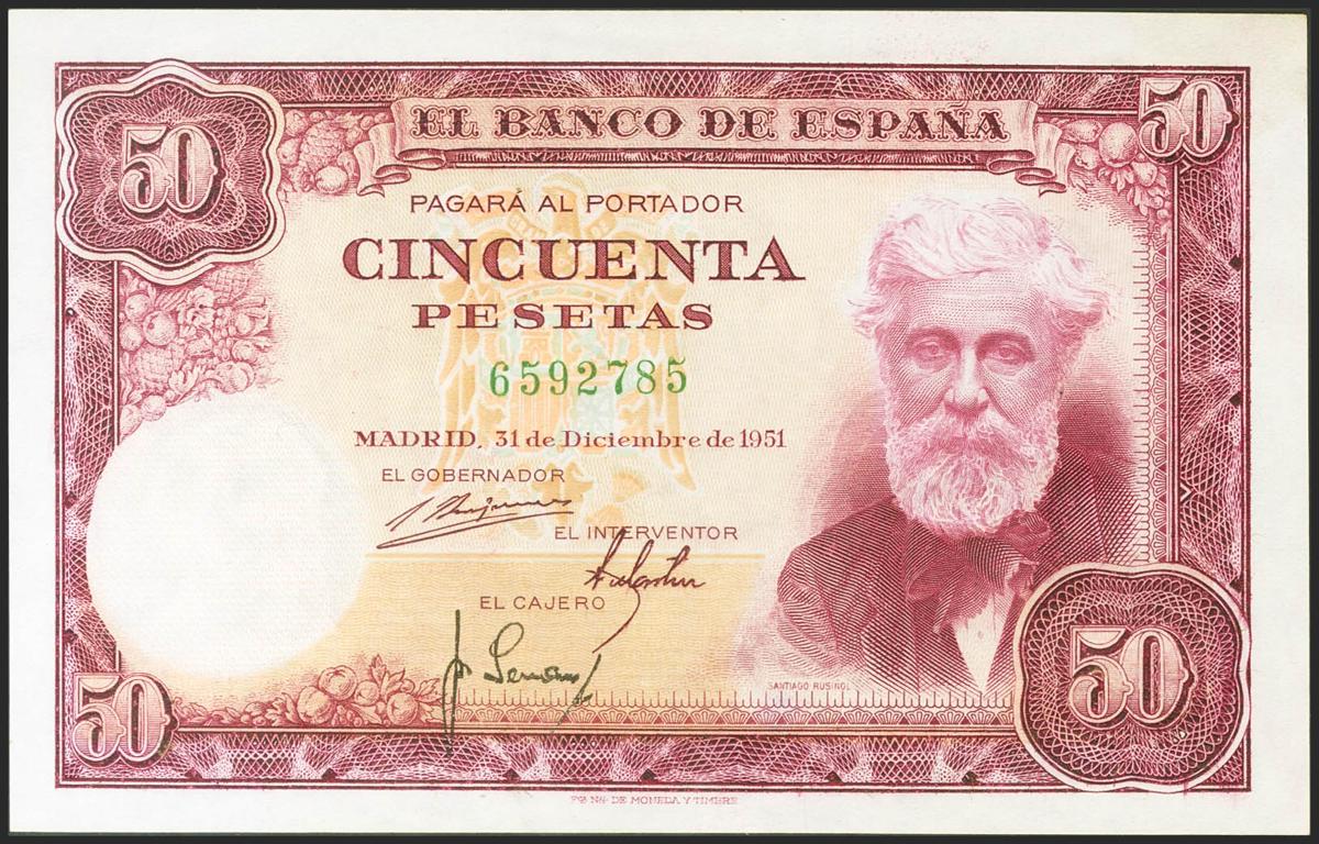 50 Pesetas. 31 de Diciembre de 1951. Sin serie. (Edifil 2021: 462). Apresto original. SC.