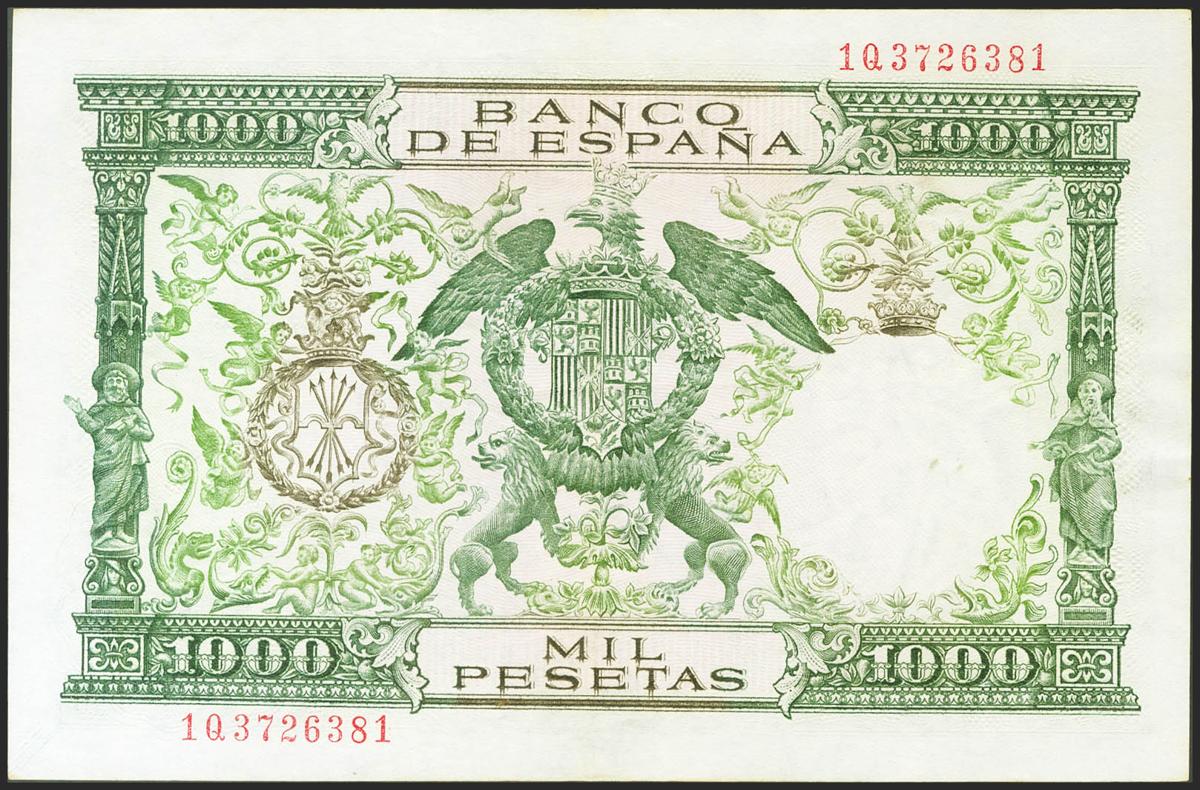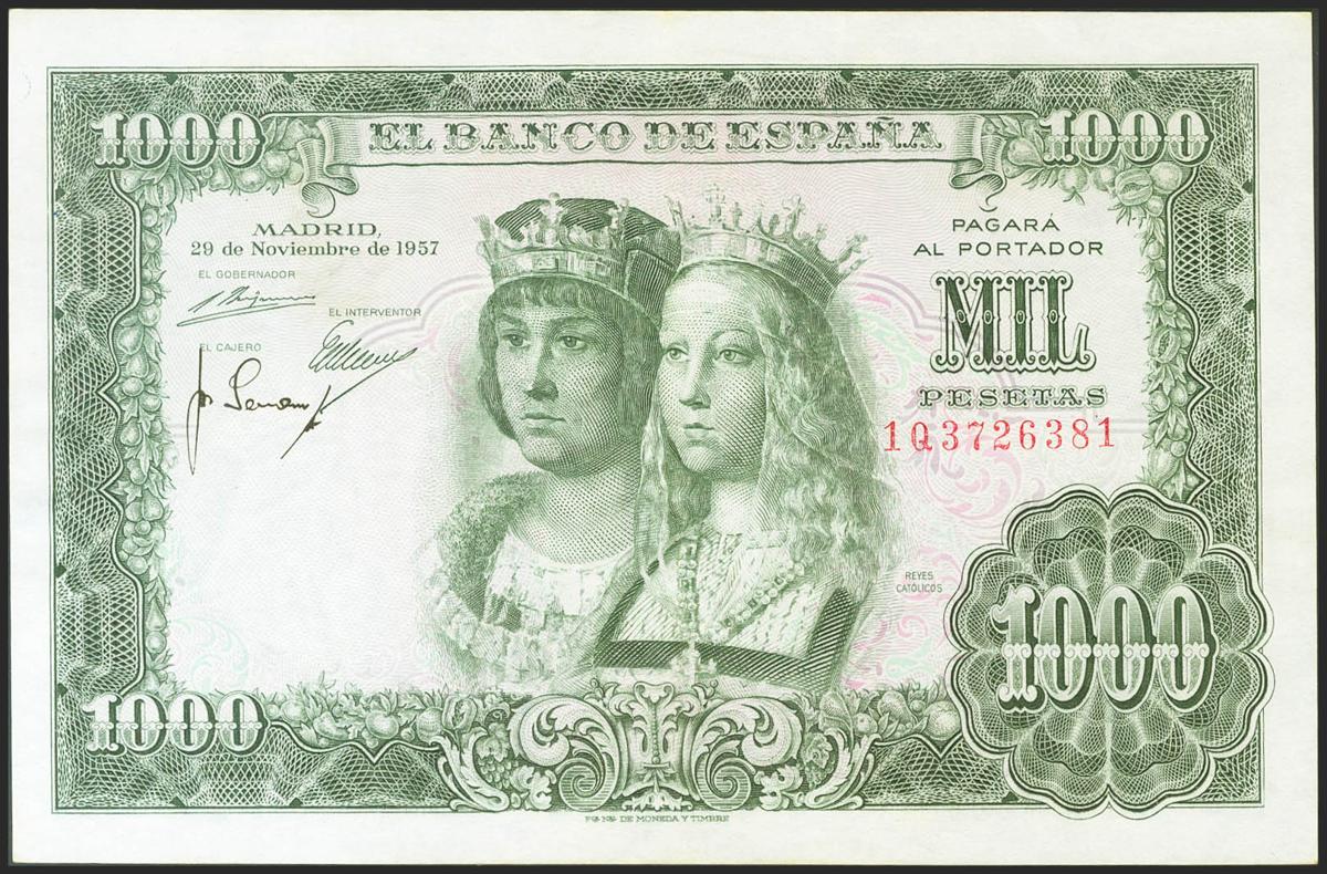 1000 Pesetas. 29 de Noviembre de 1957. Serie 1Q. (Edifil 2021: 469b). Conserva gran parte del apresto original. EBC+.