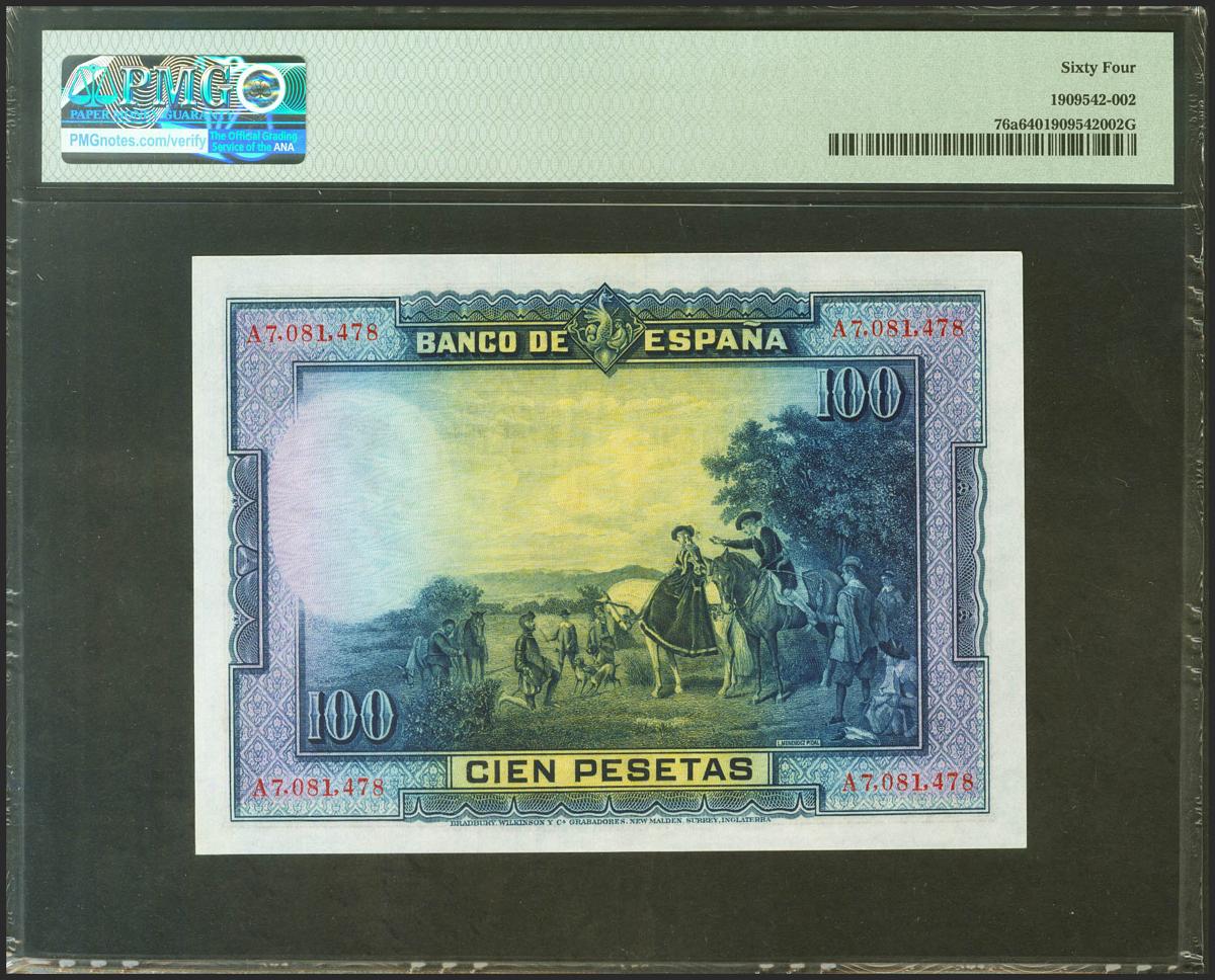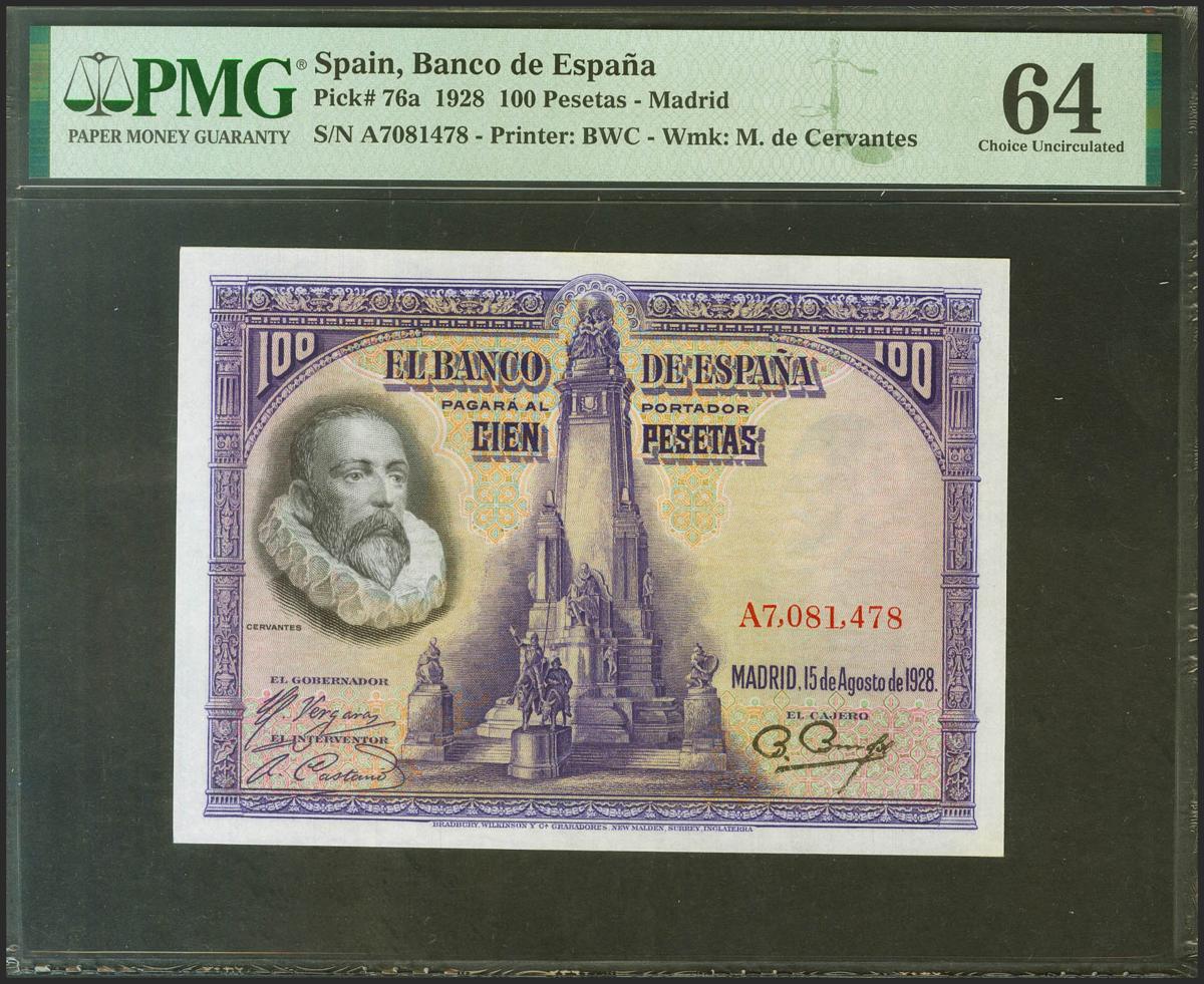 100 Pesetas. 15 de Agosto de 1928. Serie A. (Edifil 2021: 355a, Pik: 76a). SC. Encapsulado PMG64.
