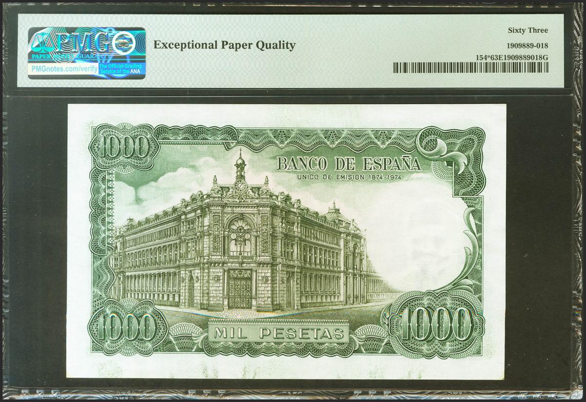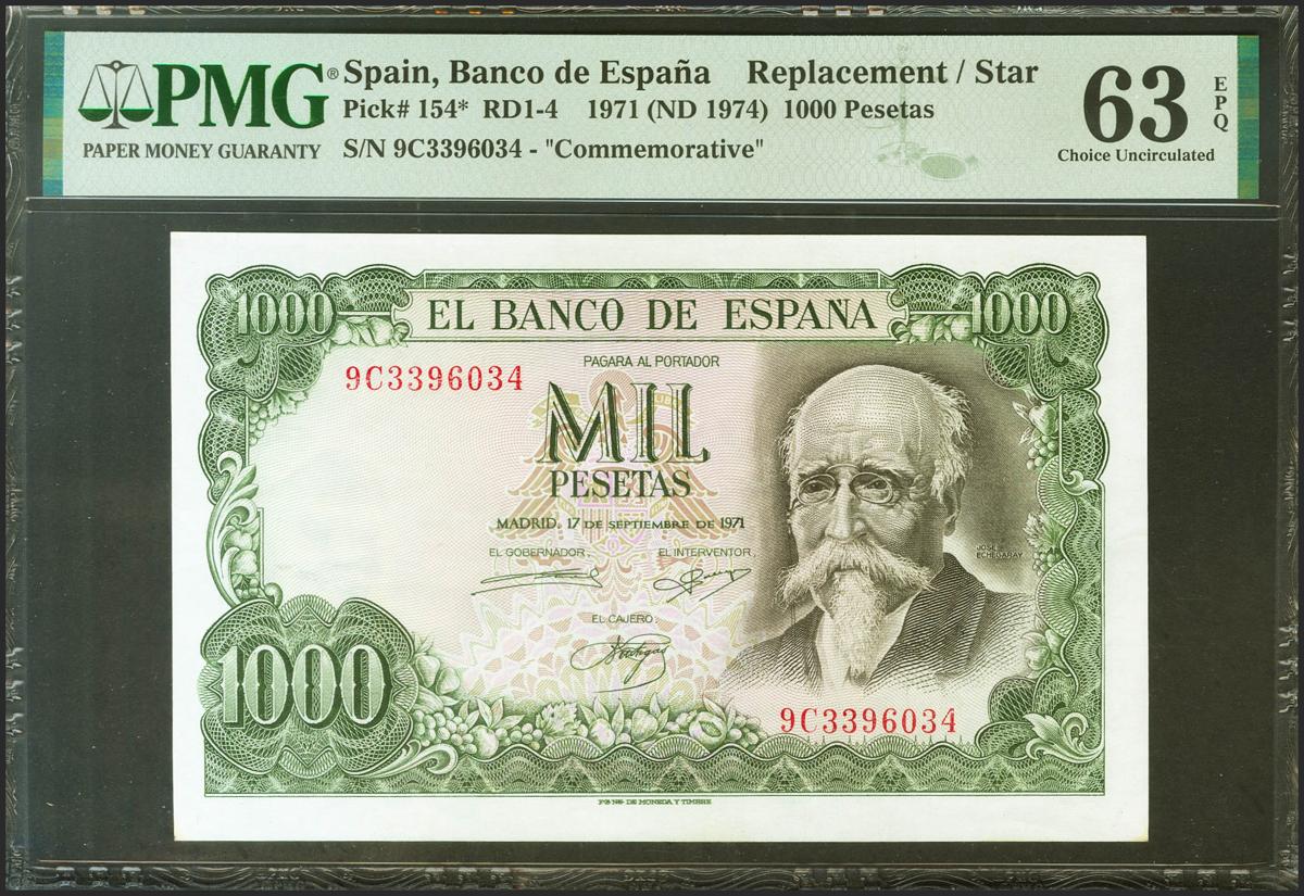 1000 Pesetas. 17 de Septiembre de 1971. Serie especial 9C. (Edifil 2021: 474d, Pick: 154*). Rara serie, apresto original. SC. Encapsulado PMG63EPQ.