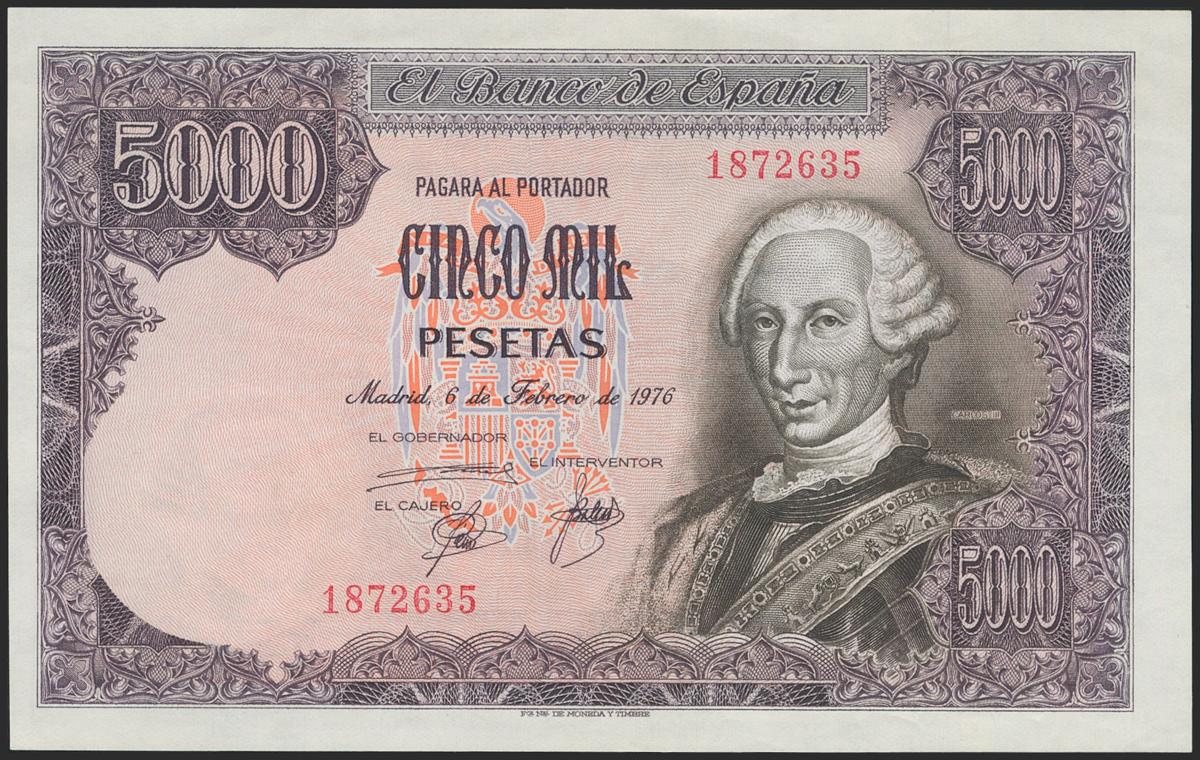 5000 Pesetas. 6 de Febrero de 1976. Sin serie. (Edifil 2021: 475). SC-.