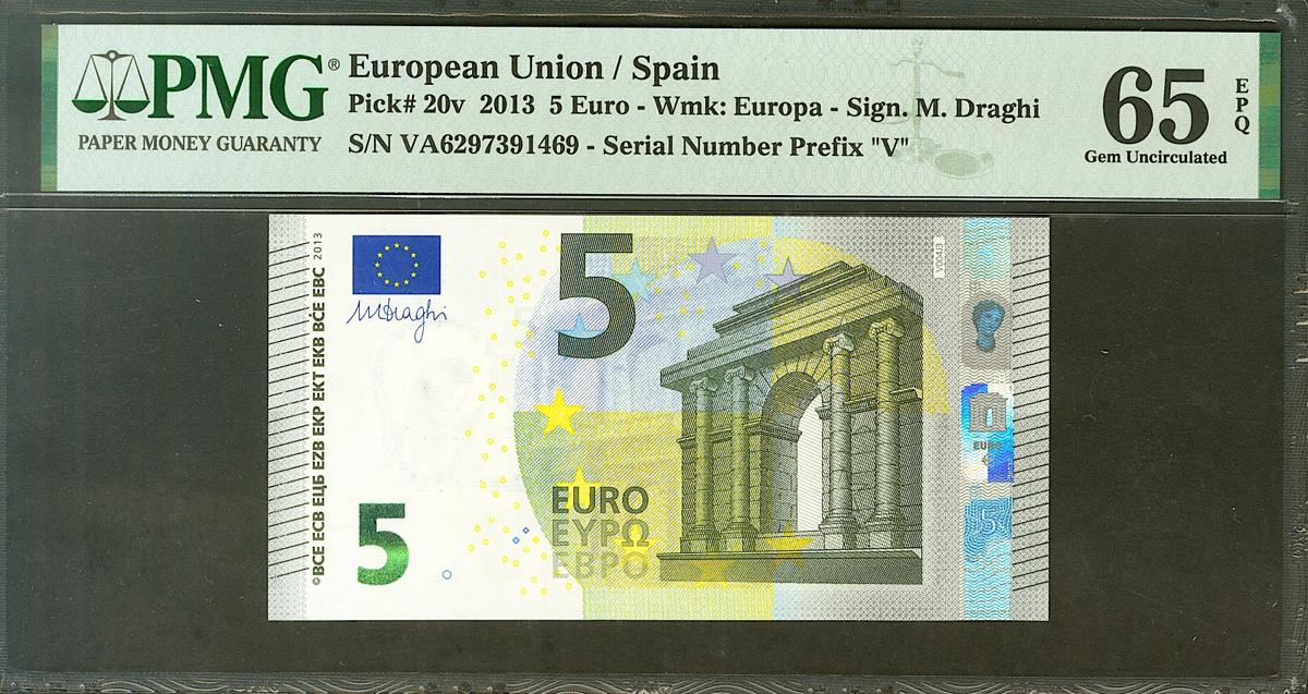 5 Euros. 2 de Mayo de 2013. Firma Draghi. Serie VA (España). (Edifil 2017: 493). SC. PMG65EPQ.