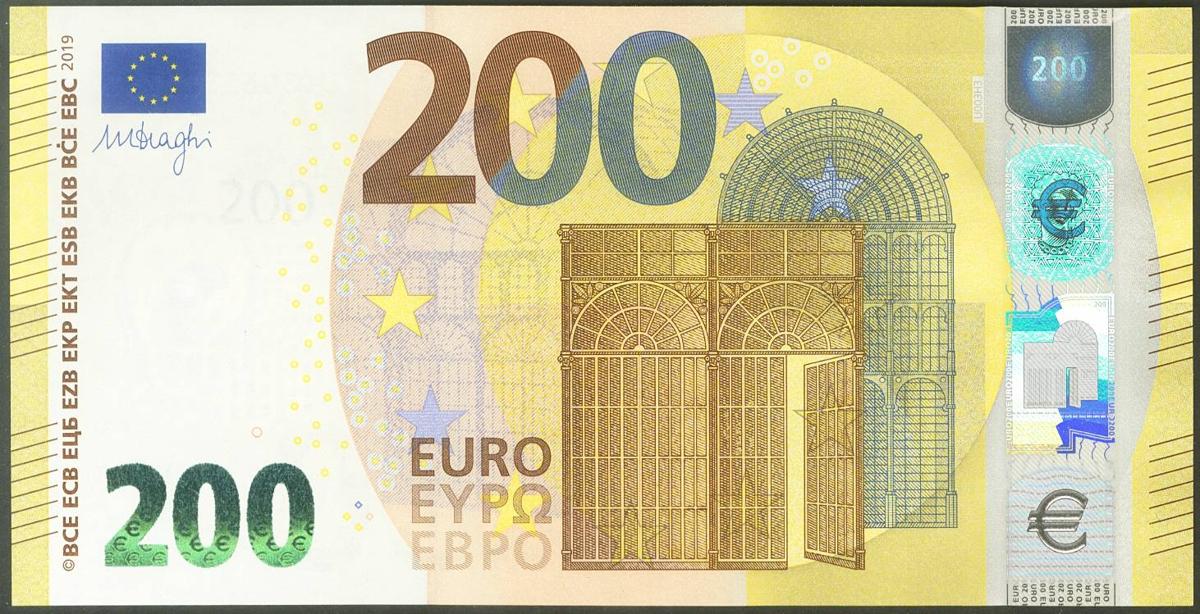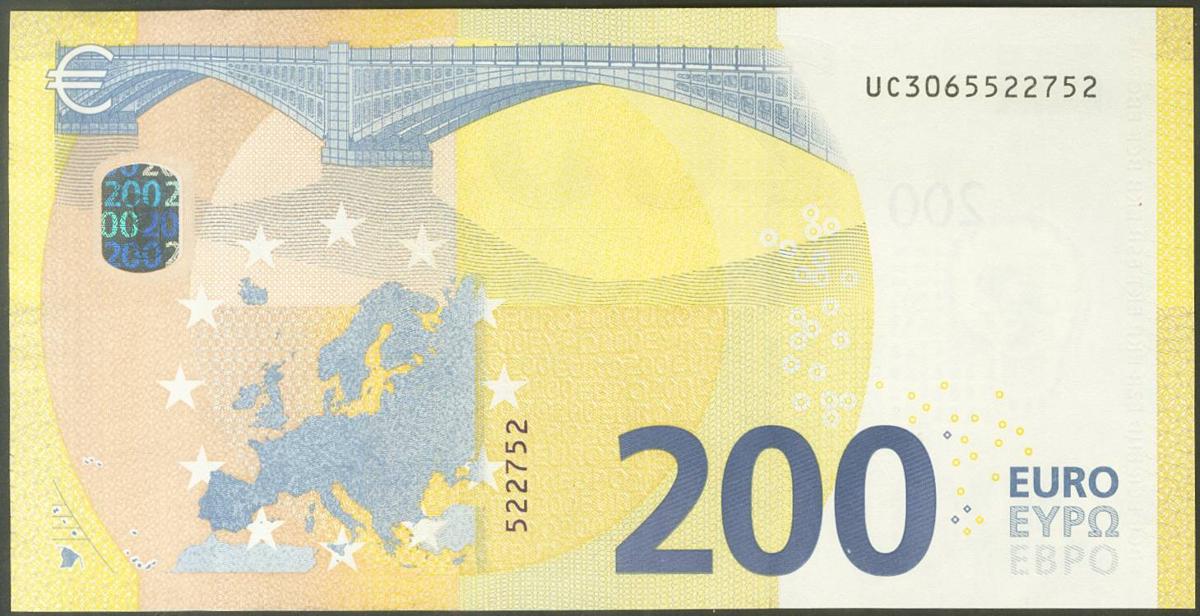 200 Euros. 28 de Mayo de 2019. Firma Draghi. Serie U (Francia). (Edifil 2021: 498). SC.