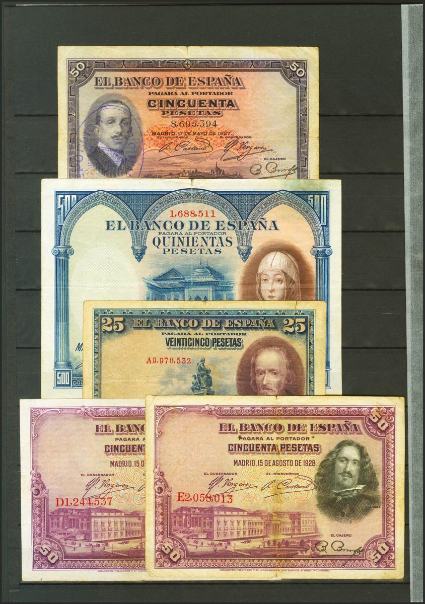 Conjunto de 43 billetes del Banco de España emitidos entre 1925 y 1939, varios de ellos de la sucursal de Bilbao, en diferentes calidades. EBC/BC. A EXAMINAR.