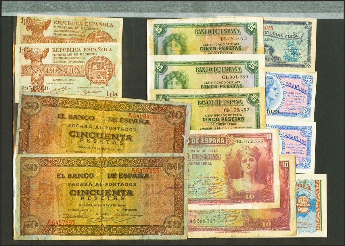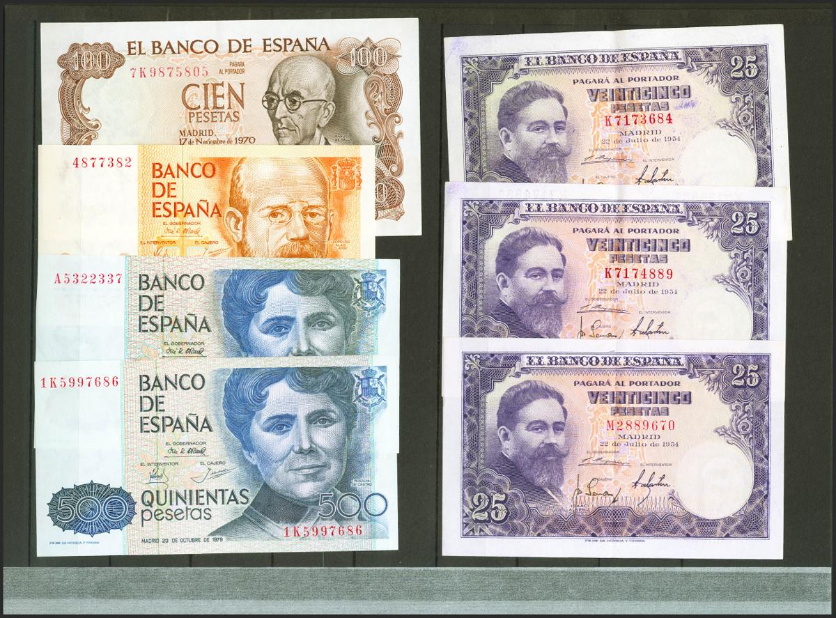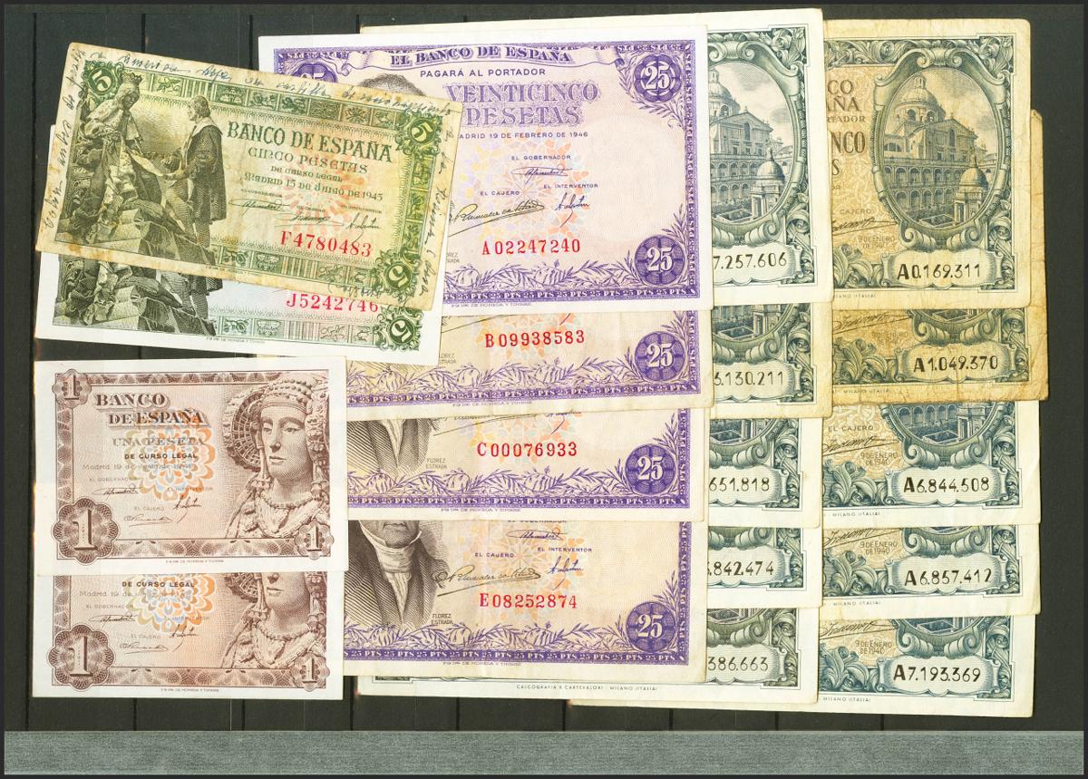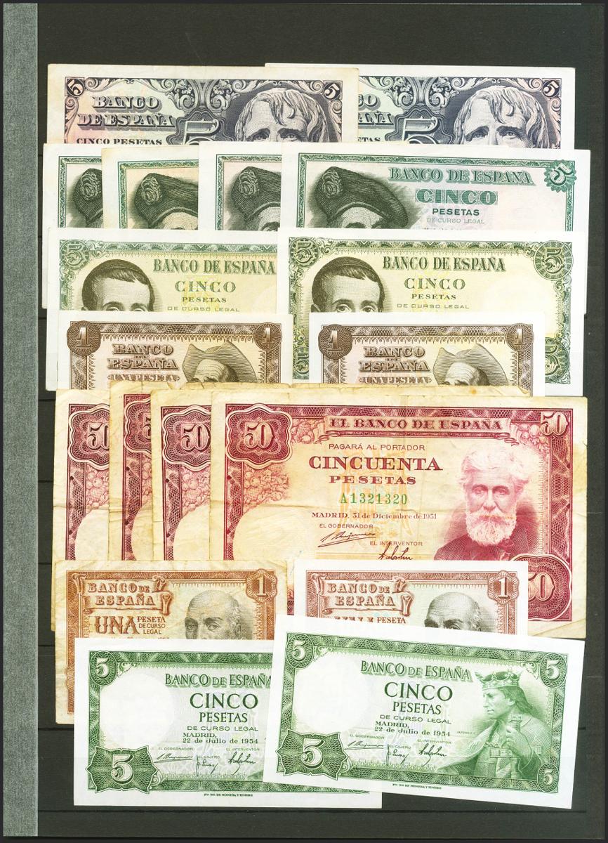 Conjunto de 56 billetes del Banco de España emitidos en el siglo XX, de diferentes emisiones y en diversas calidades. A EXAMINAR.