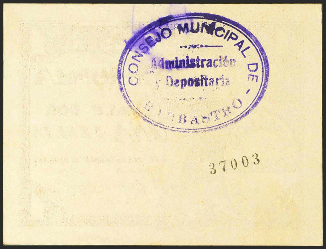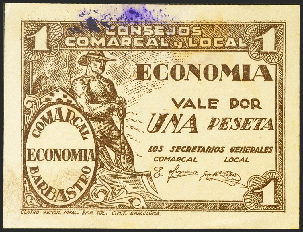 BARBASTRO (HUESCA). 1 Peseta. (1937ca). (González: 883). Inusual. MBC.