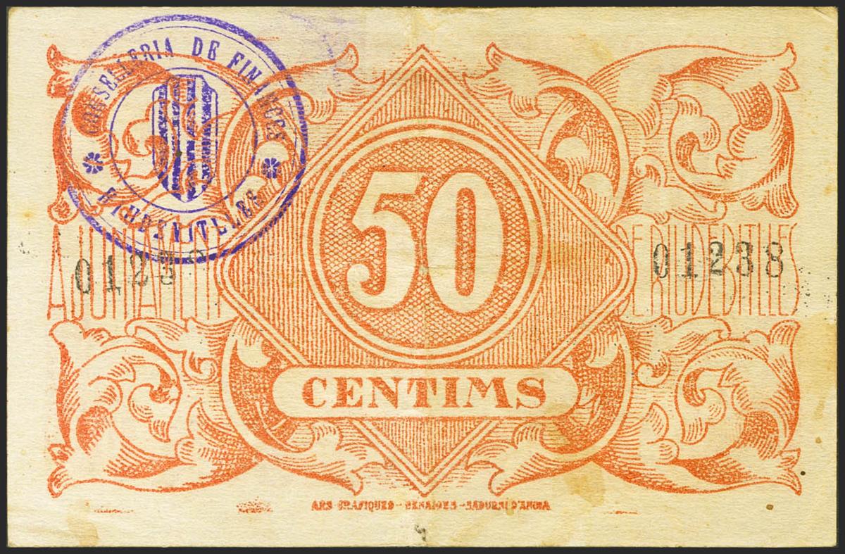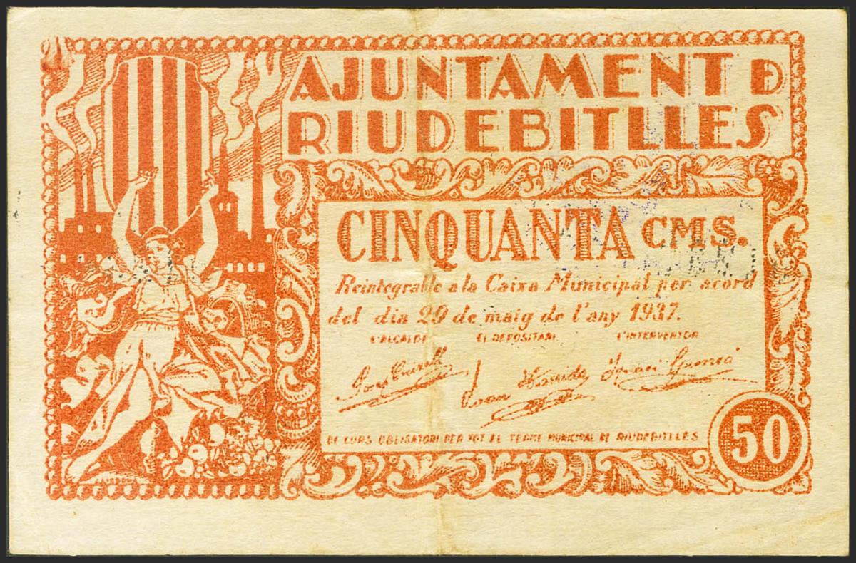 RIUDEBITLLES (BARCELONA). 50 Céntimos. 29 de Mayo de 1937. (González: 9676). Raro. MBC.