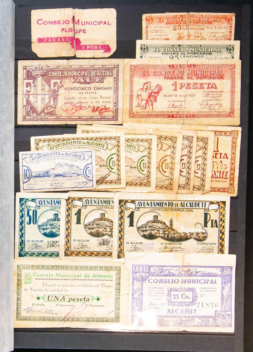 Interesante conjunto de 78 billetes de la Guerra Civil de diferentes localidades y en diferentes estados de conservación, algunos de ellos poco habituales. MBC/RC. A EXAMINAR.