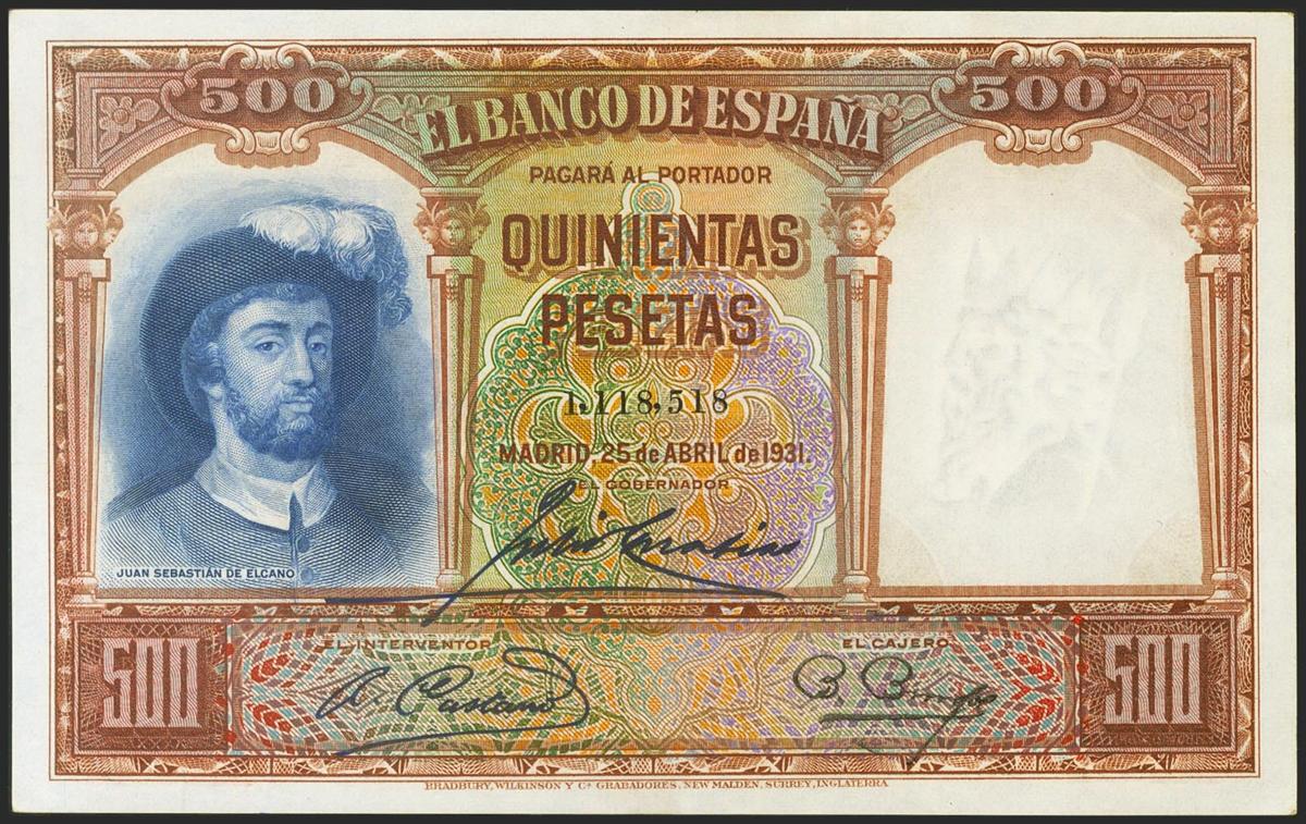 500 Pesetas. 25 de Abril de 1931. Sin serie. (Edifil 2021: 361). Conserva todo su apresto original. SC.