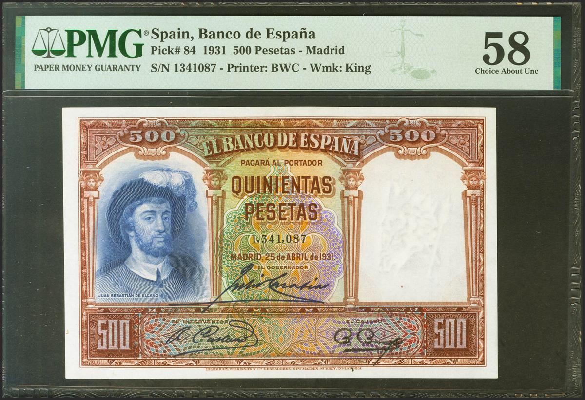 500 Pesetas. 25 de Abril de 1931. Sin serie. (Edifil 2021: 361, Pick: 84). EBC++. Encapsulado PMG58.