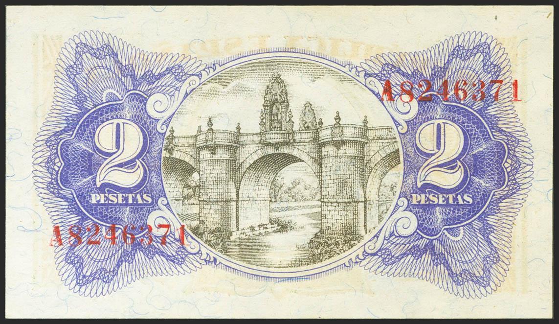 2 Pesetas. 1938. Ministerio de Hacienda. Serie A. (Edifil 2021: 393). Apresto original. SC.