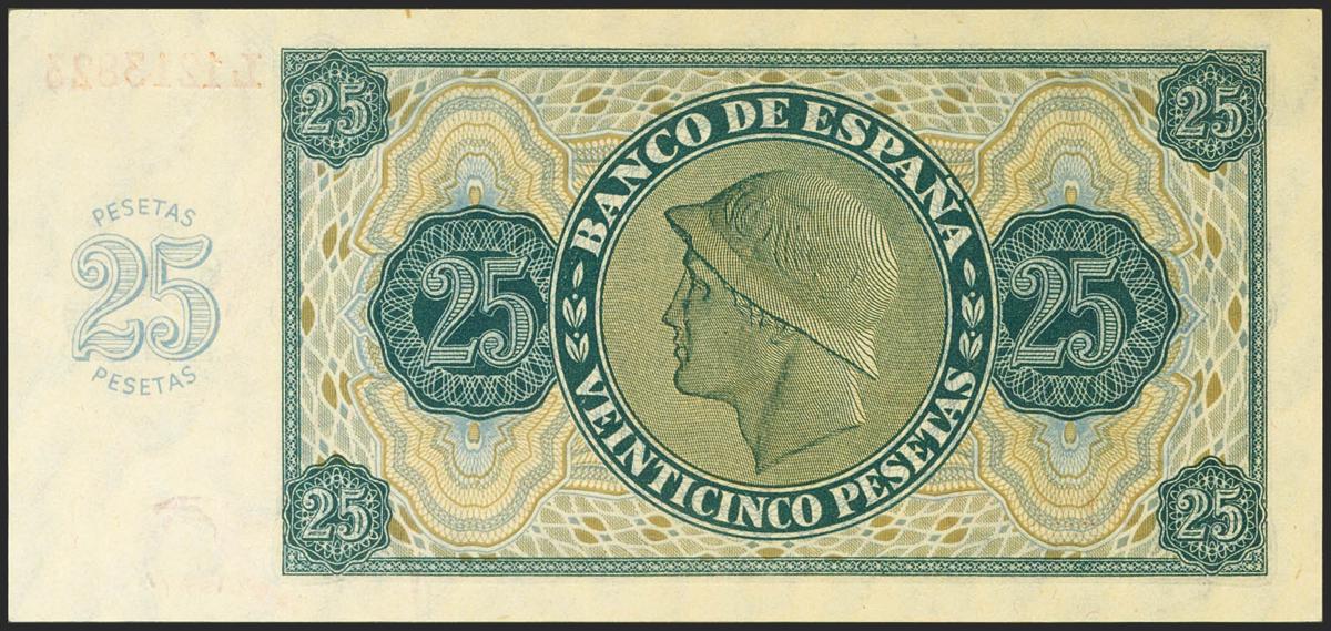 25 Pesetas. 21 de Noviembre de 1936. Serie R. (Edifil 2021: 419a). Conserva todo su apresto original. SC-.