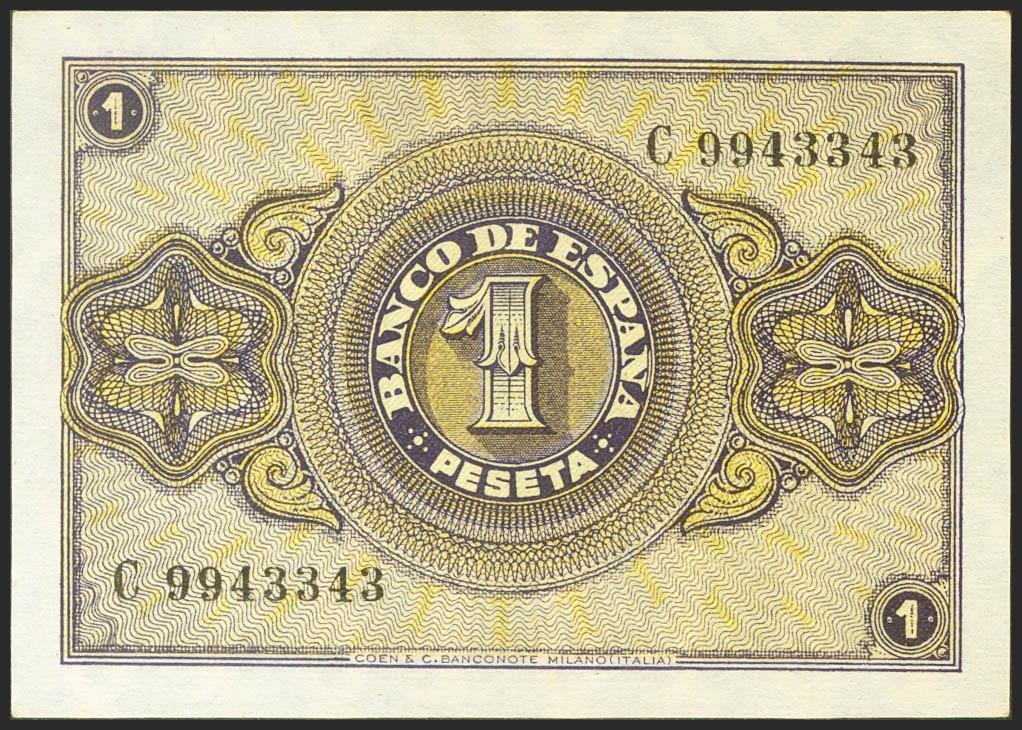 1 Peseta. 12 de Octubre de 1937. Serie C. (Edifil 2021: 425a). Apresto original. SC.