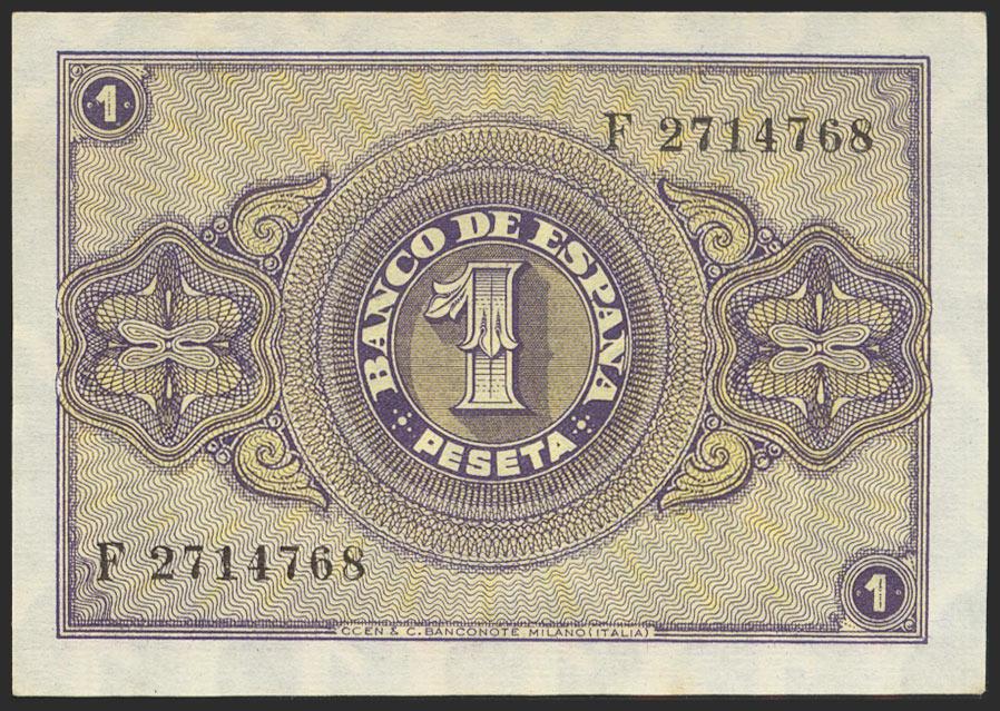 1 Peseta. 12 de Octubre de 1937. Serie F, última serie emitida. (Edifil 2021: 425a). Apresto original. SC.