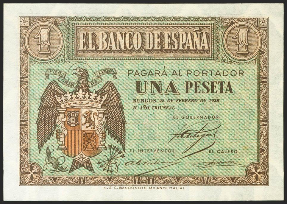 1 Peseta. 28 de Febrero de 1938. Serie B. (Edifil 2021: 427a). Apresto original. SC.