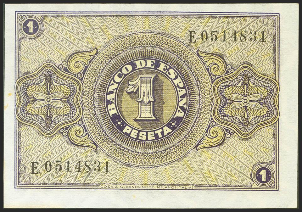 1 Peseta. 30 de Abril de 1938. Serie E. (Edifil 2021: 428a). Apresto original. SC.