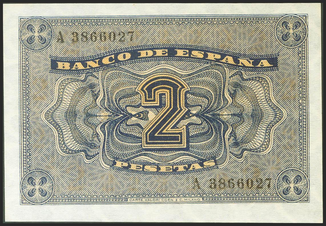 2 Pesetas. 30 de Abril de 1938. Serie A. (Edifil 2021: 429). Conserva todo su apresto original. SC.