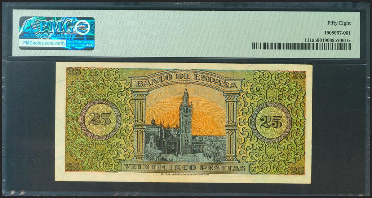 25 Pesetas. 20 de Mayo de 1938. Serie A. (Edifil 2021: 430, Pick: 111a). EBC++. Encapsulado PMG58.