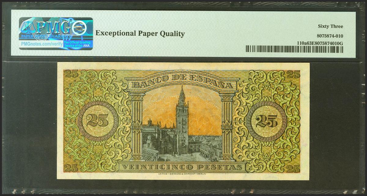 25 Pesetas. 20 de Mayo de 1938. Serie C. (Edifil 2021: 430a, Pick: 110a). Apresto original. SC. Encapsulado PMG63EPQ.