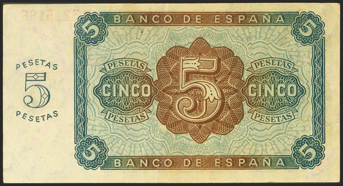 5 Pesetas. 10 de Agosto de 1938. Serie B. (Edifil 2021: 435a). Conserva gran parte de su apresto original. EBC+.