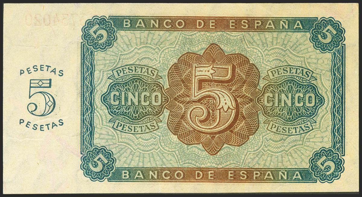 5 Pesetas. 10 de Agosto de 1938. Serie G. (Edifil 2021: 435a). Apresto original. SC-.