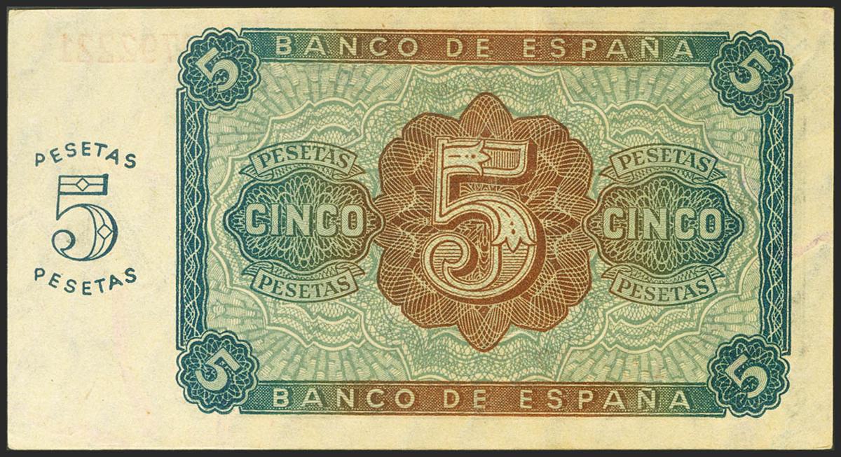 5 Pesetas. 10 de Agosto de 1938. Serie L. (Edifil 2021: 435a). Apresto original. SC--.