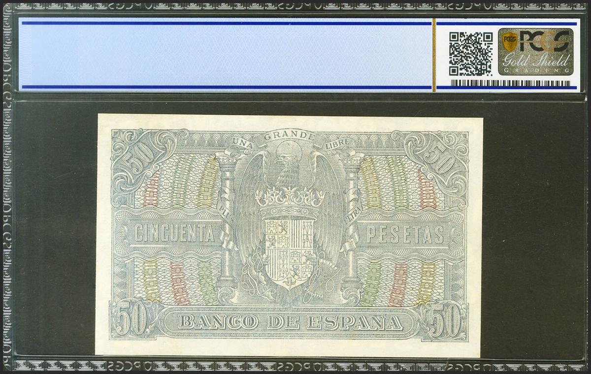 50 Pesetas. 9 de Enero de 1940. Serie D. (Edifil 2021: 437a, Pick: 117a). Inusual en esta calidad. EBC++. Encapsulado PMG58.