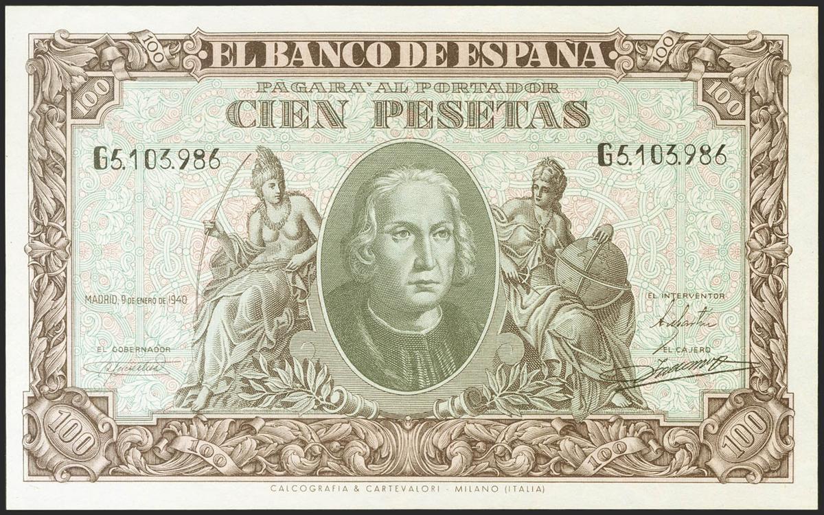 100 Pesetas. 9 de Enero de 1940. Serie G. (Edifil 2021: 438a, Pick: 118a). Presenta gran parte de su apresto original. EBC++.