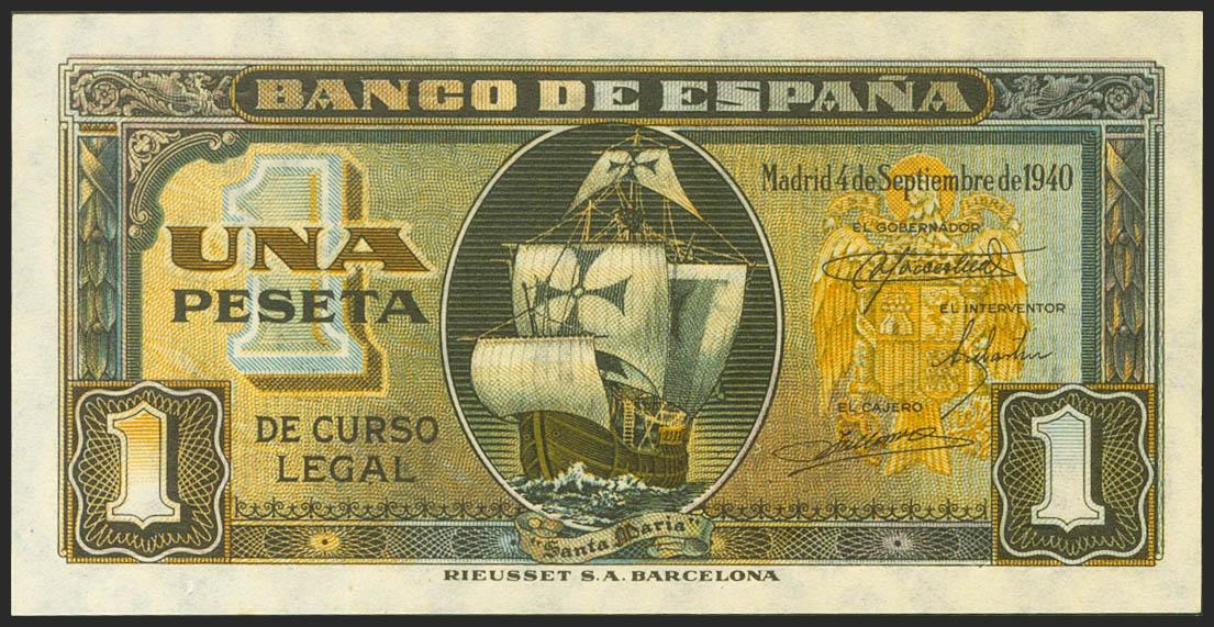 1 Peseta. 4 de Septiembre de 1940. Serie E. (Edifil 2021: 442a). Apresto original. SC.