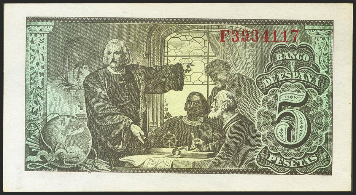 5 Pesetas. 13 de Febrero de 1943. Serie F. (Edifil 2021: 446a). Apresto original. SC-.