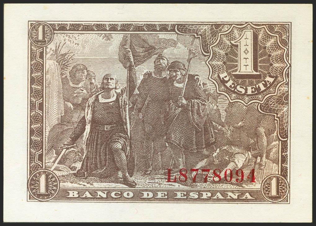 1 Peseta. 21 de Mayo de 1943. Serie L. (Edifil 2021: 447a). Apresto original. SC.