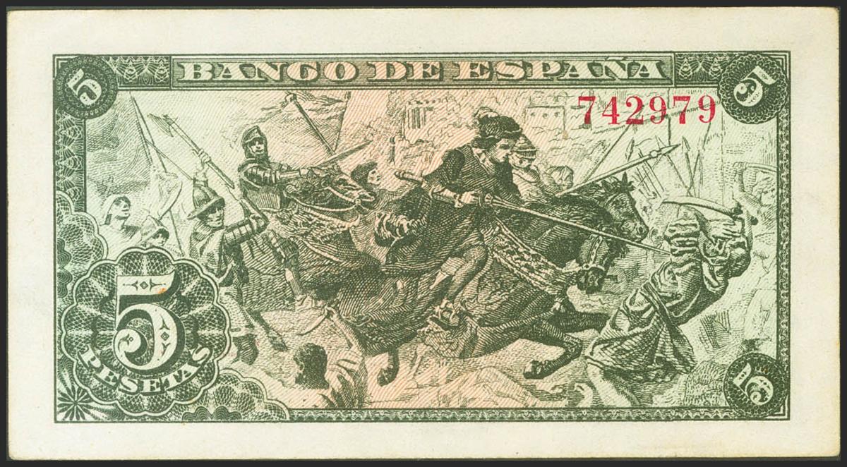 5 Pesetas. 15 de Junio de 1945. Sin serie. (Edifil 2021: 449). Apresto original. SC-.