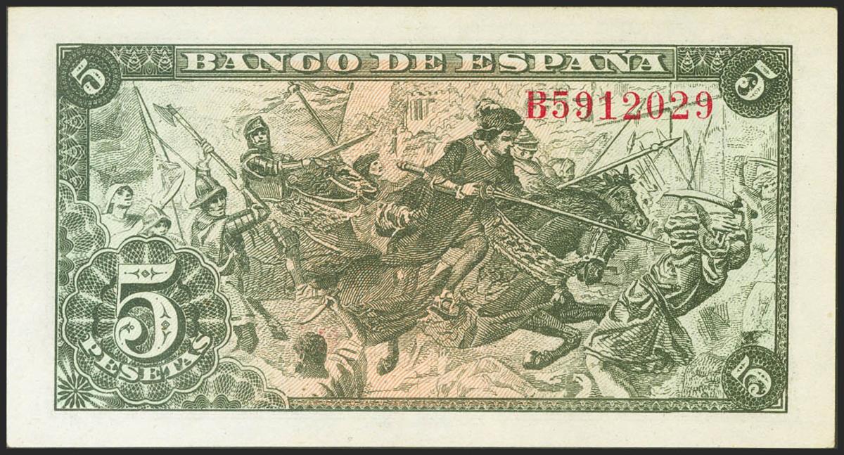 5 Pesetas. 15 de Junio de 1945. Serie B. (Edifil 2021: 449a). Apresto original. EBC++.