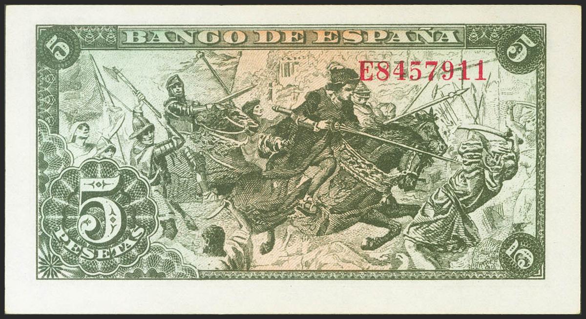 5 Pesetas. 15 de Junio de 1945. Serie E. (Edifil 2021: 449a). Apresto original. SC-.