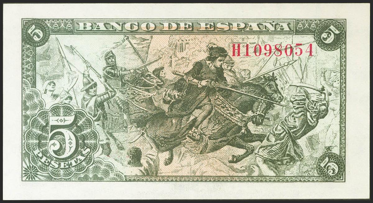 5 Pesetas. 15 de Junio de 1945. Serie H. (Edifil 2021: 449a). Apresto original. SC-.