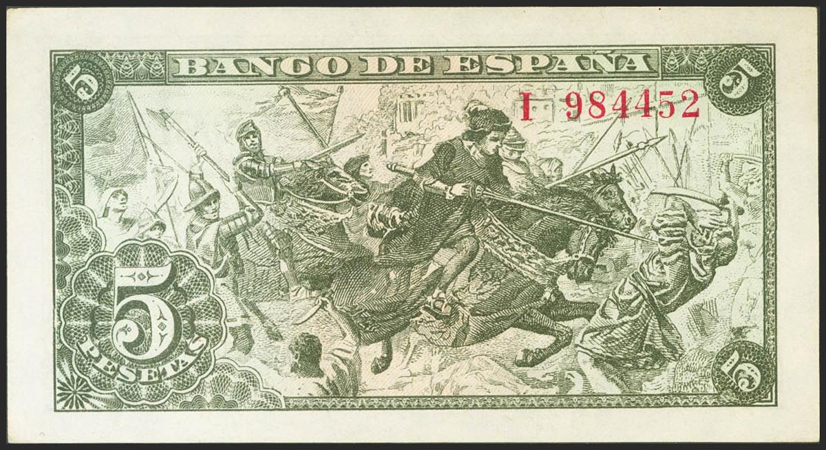5 Pesetas. 15 de Junio de 1945. Serie I. (Edifil 2021: 449a). Apresto original. SC-.