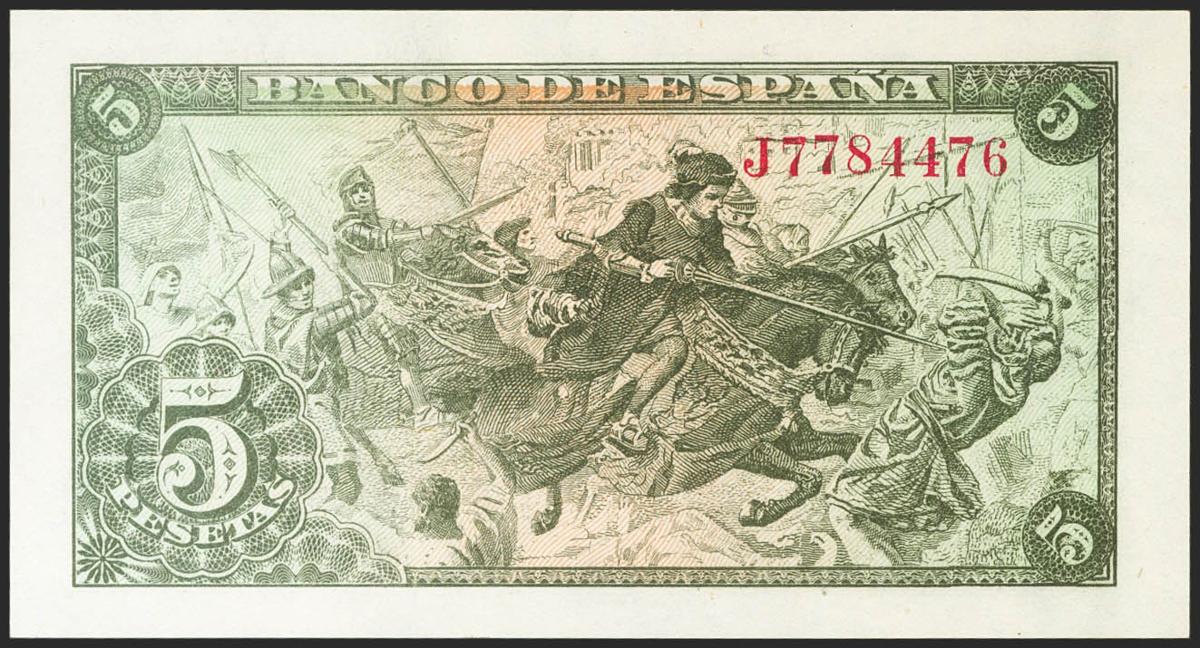 5 Pesetas. 15 de Junio de 1945. Serie J. (Edifil 2021: 449a). Apresto original. SC.
